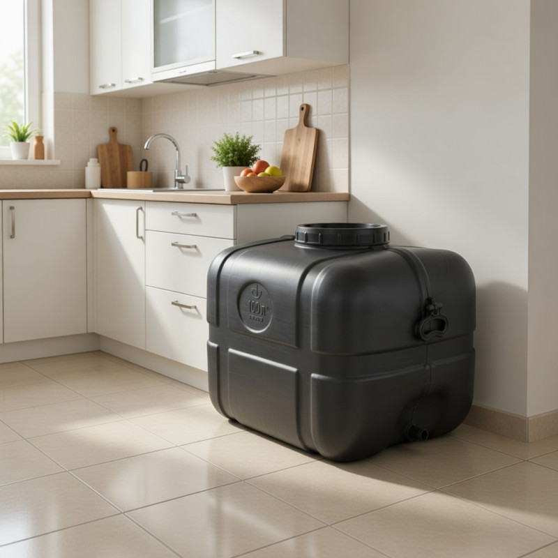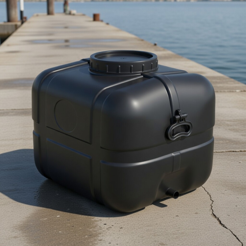 Емкость прямоугольная непищевая черная. Материал - устойчивый к ультрафиолетовым лучам полиэтилен позволяет эксплуатировать как в помещении, так и на улице при температуре от -10 до +60°С. Емкость техническая, имеет специфический запах, подходит для длительного хранения воды, химических веществ (дизельное топливо, масла, кислоты, ядохимикаты и многое другое). Также можно хранить вязкие, порошкообразные и гранулированные вещества. Основным преимуществом перед всевозможными аналогами является малый вес, большой ассортимент форм и литража, длительный срок эксплуатации (до 50 лет). Емкость не предназначена для работы под давлением, в связи с этим крышка закрывается не герметично. Монтировать необходимо на ровное твердое горизонтальное основание. Исключить внешнее физическое воздействие. Штуцер под слив выплавлен в бочке, на него можно подсоединить шланг при помощи хомута. Запрещается хранить легковоспламеняющиеся жидкости. Если жидкость может замерзнуть, рекомендуется ее предварительно слить. Резиновая прокладка на штуцерах не устойчивая к бензину и дизельному топливу, при использовании штуцера под топливо, необходимо заменить прокладку на масло - бензостойкую.