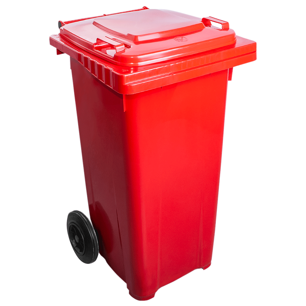Бак для мусора на колесах с ручкой 120 л красный
