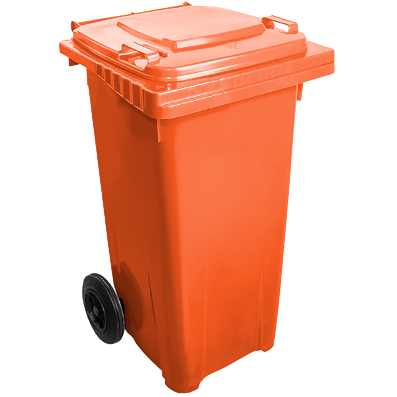 Бак для мусора на колесах с ручкой 120 л оранжевый