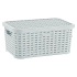 Корзина под ротанг с крышкой, прекрасно подойдет для хранения мелких вещей и продуктов, а также послужит отличным аксессуаром для оформления интерьера. Материал изделия (полипропилен) безопасен при контакте с пищевыми продуктами. Допускается использовать в диапазоне температур от -25 до +95 °C. Можно мыть в посудомоечной машине.