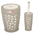 Линейка наборов для ванной комнаты STONE имеет современный дизайн в сочетании с функциональностью и практичностью. Особенностью данной модели является рельефный рисунок с переплетением двух изделий. Палитра цветов дает возможность подобрать набор под любой интерьер. Набор состоит из двух предметов: корзина для мусора с поворотной крышкой и щетка для туалета. С самозакрывающейся крышкой ведра, содержимого не будет видно. В ёршике использована левая резьба (при соединении ерша с ручкой нужно вращать ерш против часовой стрелки). Изделия сделают вашу ванную более уютной и разнообразной. Товар изготовлен из прочного пластика.