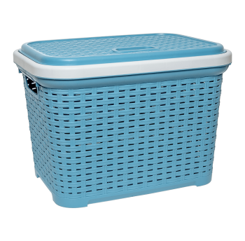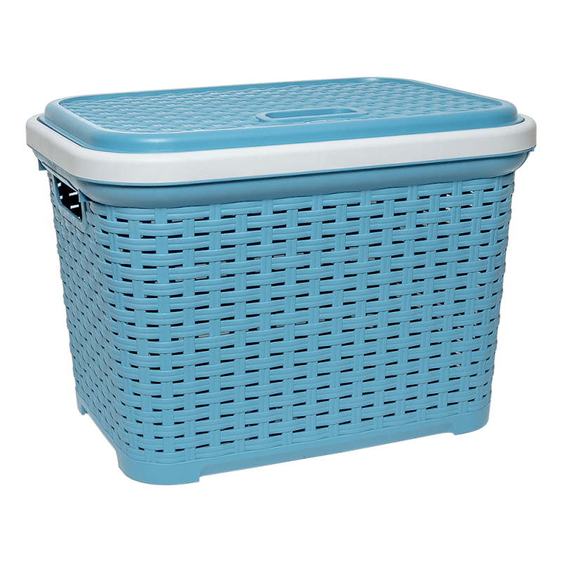 Корзина для белья удобная и комфортная в использовании. Плетение под ротанг позволяет циркулировать воздуху, а крышка закроет содержимое от глаз. Корзина компактная, что дает возможность разместить ее в узком пространстве. Изделие изготовлено из высококачественного пластика и гарантировано прослужит долгие годы.