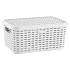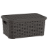 Корзина под ротанг с крышкой, прекрасно подойдет для хранения мелких вещей и продуктов, а также послужит отличным аксессуаром для оформления интерьера. Материал изделия (полипропилен) безопасен при контакте с пищевыми продуктами. Допускается использовать в диапазоне температур от -25 до +95 °C. Можно мыть в посудомоечной машине.