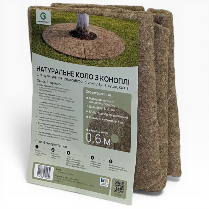 Конопляные приствольные круги используют в садах, парках, питомниках, на приусадебных участках и в ландшафтном дизайне. Они идеально подходят для молодых саженцев, плодовых деревьев и ягодных кустарников.