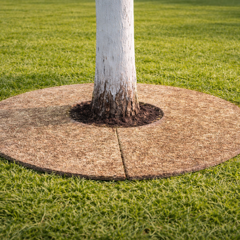 Благодаря плотной структуре волокон круг подавляет рост сорняков, снижает риск появления вредителей и создаёт естественный барьер против образования плесени. При этом материал хорошо пропускает воздух и воду, обеспечивая корневой системе доступ к кислороду и питательным веществам.