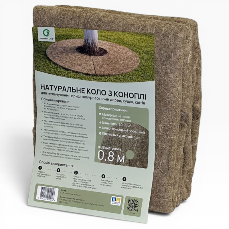 Приствольный круг из конопляного волокна — это натуральное и эффективное решение для мульчирования почвы вокруг саженцев, деревьев и кустарников, цветов. Он помогает поддерживать оптимальный микроклимат в прикорневой зоне, защищая растения от пересыхания, избыточной влаги и резких температурных колебаний.
