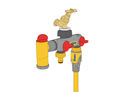 Двухпутевой разделитель потоков HoZelock с краном Flowmax. Разделитель потоков Hozelock позволяет преобразовать из одного крана два отдельных выхода и вращающийся кран Flowmax. Вращающийся кран направляет поток воды в нужное вам направление - это экономит время и силы, т.к. не нужно держать ведро или лейку под краном. Кран можно установить на любую из сторон разделителя потоков. Выходы с клапаном индивидуального управления потоком, это позволяет использовать все одновременно или по одному.