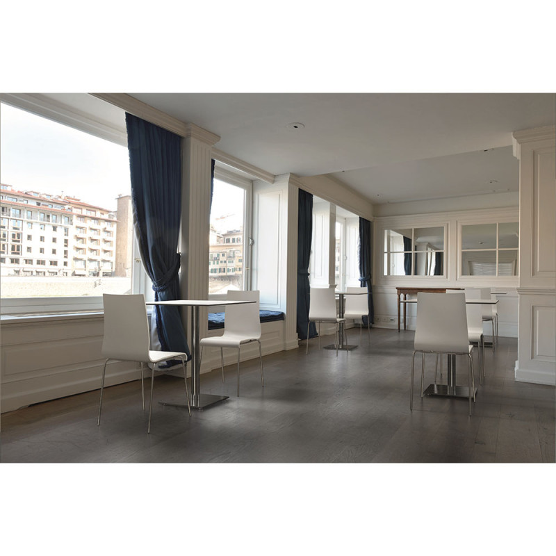 Стул Papatya Icon-S с полипропиленовым черным сиденьем и окрашенными в черный цвет ножками. В состав полимеров, из которых изготовлен стул, входит защита от УФ лучей и антистатические присадки, что позволяет использовать его как в помещении, так и на открытом воздухе.