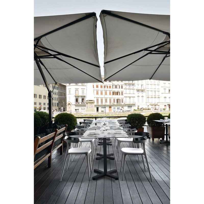 База стола Kross 63x63x73 см, прекрасно доповнює сучасний дизайн. Блиск і граціозність бази для столу привнесе в інтер'єр особливу гармонію і витонченість. Чудово поєднується з будь якими стільцями, а стільницю можна підібрати з матеріалу на ваш розсуд: дерево, мармур, міцний пластик, МДФ, ламінована ДСП і інші. Простий монтаж опори до стільниці не вимагає специфічних знань, завдяки цьому Ви зможете з легкістю зробити для себе стильний офісний або обідній стіл. Можна використовувати на вулиці і в приміщенні.