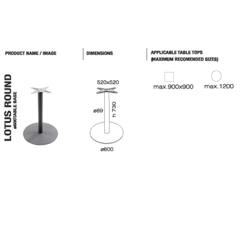 База стола Lotus Round - опора для столів в сучасному стилі. Блиск і граціозність бази для столу привнесе в інтер'єр особливу гармонію і витонченість. Чудово поєднується з будь-якими стільцями, а стільницю можна підібрати з матеріалу на ваш розсуд: дерево, мармур, міцний пластик, МДФ, ламінована ДСП і інші. Простий монтаж опори до стільниці не вимагає специфічних знань, завдяки цьому Ви зможете з легкістю зробити для себе стильний офісний або обідній стіл. Можна використовувати на вулиці і в приміщенні.