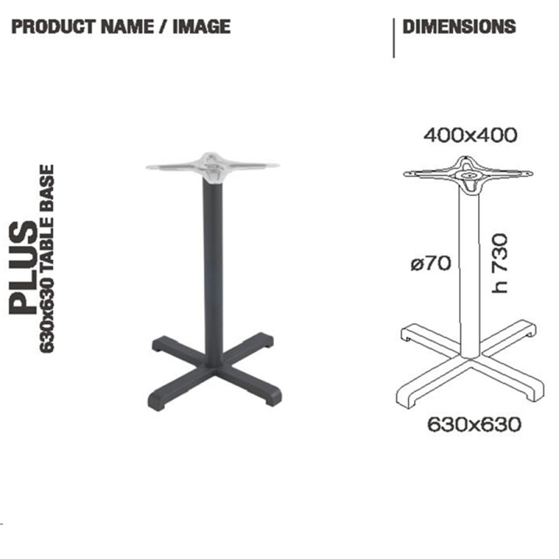 База стола Plus 63x63x73 см- матова опора для столів в сучасному стилі. Блиск і граціозність бази для столу привнесе в інтер'єр особливу гармонію і витонченість. Чудово поєднується з будь-якими стільцями, а стільницю можна підібрати з матеріалу на ваш розсуд: дерево, мармур, міцний пластик, МДФ, ламінована ДСП і інші. Простий монтаж опори до стільниці не вимагає специфічних знань, завдяки цьому Ви зможете з легкістю зробити для себе стильний офісний або обідній стіл. Можна використовувати на вулиці і в приміщенні.