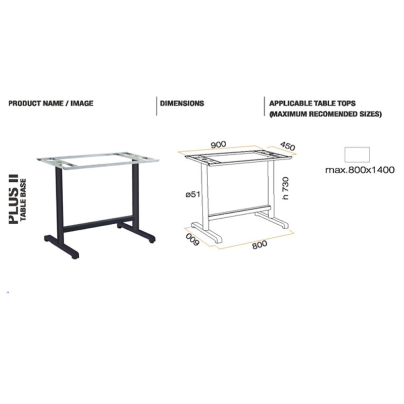 База стола Plus II 80x60x73 см - опора для столів в сучасному стилі. Блиск і граціозність бази для столу привнесе в інтер'єр особливу гармонію і витонченість. Чудово поєднується з будь-якими стільцями, а стільницю можна підібрати з матеріалу на ваш розсуд: дерево, мармур, міцний пластик, МДФ, ламінована ДСП і інші. Простий монтаж опори до стільниці не вимагає специфічних знань, завдяки цьому Ви зможете з легкістю зробити для себе стильний офісний або обідній стіл. Можна використовувати на вулиці і в приміщенні.