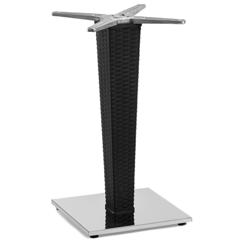База столу Tilia Antares Single максимально стійка і довговічна. Каркас металевий з плетінням під ротанг (поліетилен) і опорою з нержавіючої сталі. Висота і ухил регулюються, це дозволяє міцно встановити стіл навіть на нерівну поверхню. Підходить для комбінування зі стільницями Antares 70×70, 80×80, 80×120, 90×150. Можна використовувати на вулиці біля басейну, в приміщенні ресторанів, обідніх кімнат і кухонь. Матеріали виробу стійкі до природних опадів, перепадів температур, впливу УФ випромінювання.