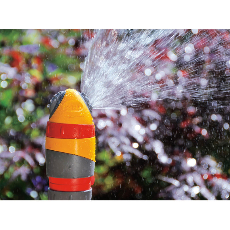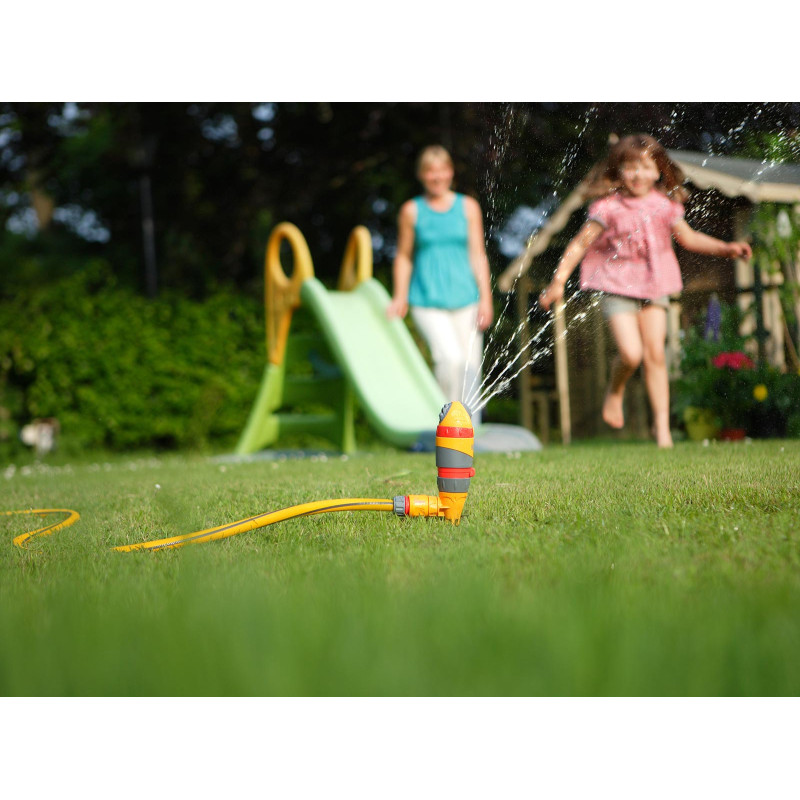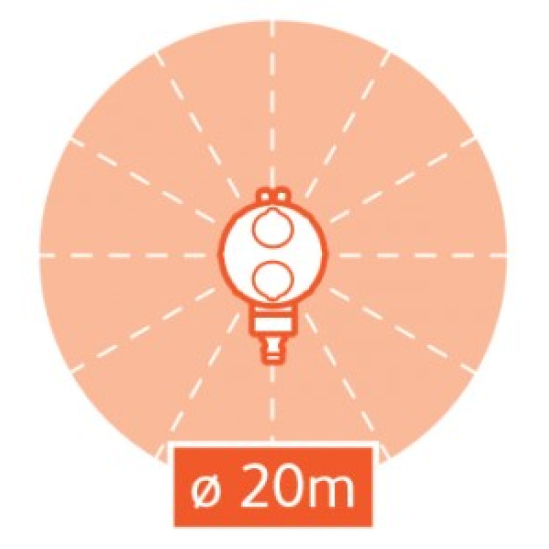 Зрошувач/дощувач круговий Pro HoZelock. Максимальна площа покриття 314 м², діаметр 20 м. Равномірне зрошення, завдяки гідромоторів і форсункам. Обертаючись дощувач може поливати повне коло або його частину, налаштування виконується легко і просто за допомогою регулятора. Спеціально розроблено для забезпечення 100% рівномірного покриття водою незалежно від тиску води (1-10 бар). Встановлюється на міцний штир для використання на газонах і бордюрах, забезпечуючи стійкість. Два режими розпилення: дрібне розбризкування для насіння, розсади або зволоження в парниках, струмінь для газонів і вкорінених рослин. Встановлюється на міцний металевий кілочок для використання на газонах і бордюрах, забезпечуючи більшу стійкість.