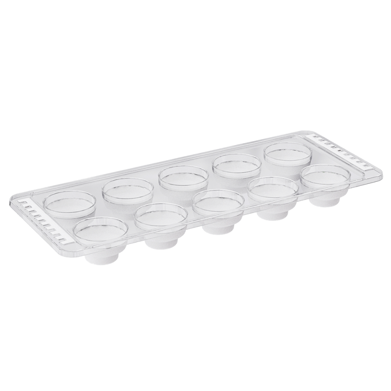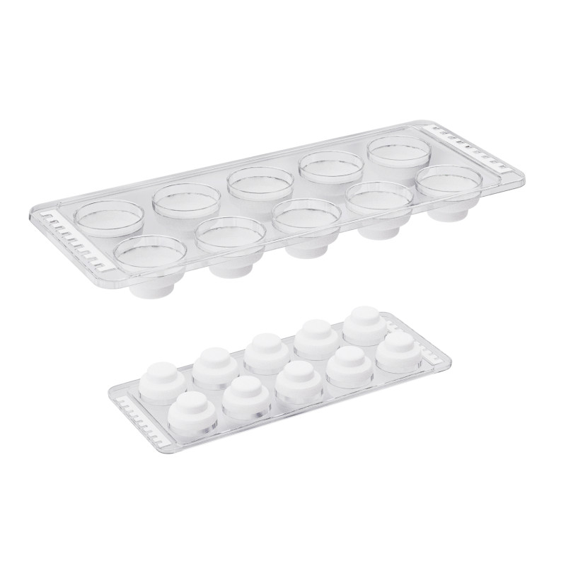 Форма для льоду, має по 10 великих осередків для заморозки. Основа форми пластикова, а осередки силіконові - витягувати лід легко і безпечно. Форма для льоду виготовлена з якісних матеріалів, придатних для контакту з харчовими продуктами.