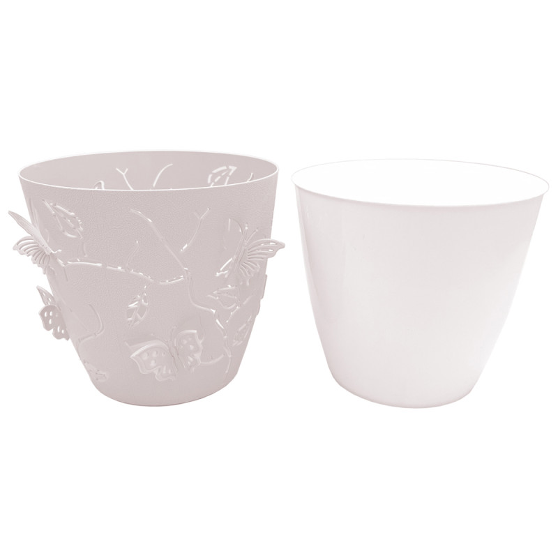 Метелики пурхатимуть на підвіконні цілий рік, з квітковими горщиками 3D. Цікавий, оригінальний дизайн, додасть нотку легкості і ніжності в інтер'єр. Висадка рослин і полив, проводиться у внутрішній горщик, забезпечуючи чистоту і зручність, без протікання води на підвіконня. Горщик виготовлений із пластику з матовою, текстурованою поверхнею, характеризується ударостійкістю і еластичністю, стійкий до вигорання кольору під впливом сонця. Для створення 3D ефекту, необхідно з внутрішньої сторони горщика, злегка натиснути на крильця метелика. При необхідності, крильця можна повернути в початкове положення.