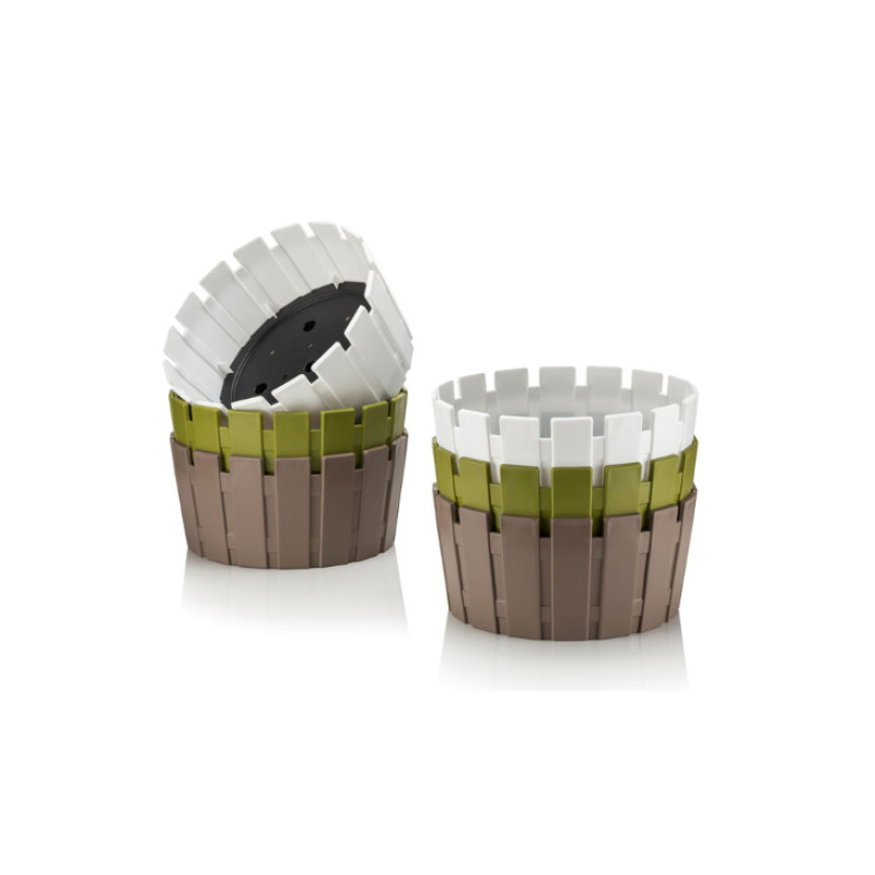 Горщик для квітів Akasya, виконаний у вигляді паркана, що додає йому заміський колорит. Кольорова палітра горщиків, вигідно підкреслить ваші рослини і освіжить створений інтер'єр. У комплект входить дренажна вставка, яка відводить зайву воду і сприяє аерації коренів. Коріння рослини не застоюються в воді і забезпечені циркуляцією повітря. У квіткових горщиках Akasya, вода не протікає на підвіконня при поливі, забезпечуючи чистоту і зручність в експлуатації. Виготовлений з поліпропілену - найбільш безпечний з усіх видів пластику, матеріал гнучкий, не має запаху, стійкий до вигорання кольору під впливом сонця.