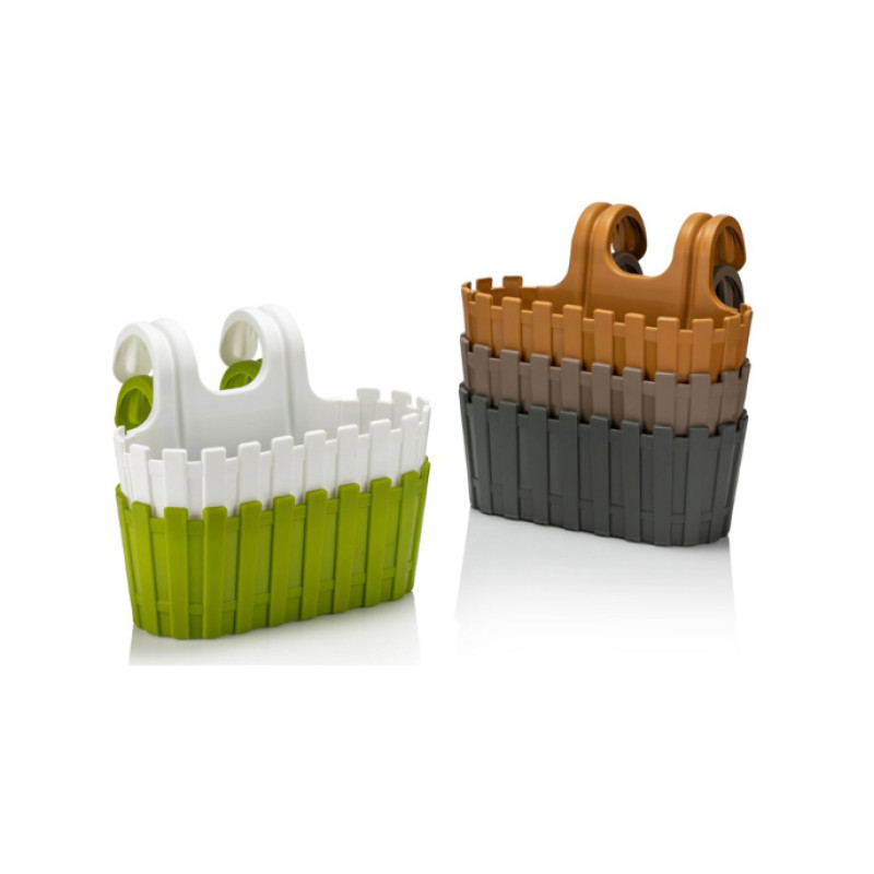 Опис і застосуванняГорщик для квітів балконний Akasya, виконаний у вигляді паркана, що додає йому заміський колорит. Кольорова палітра горщиків, вигідно підкреслить ваші рослини і освіжить створений інтер'єр. Має два кріплення, які дозволяють легко підвісити горщик на перила, поручні або огорожі. Є дренажна вставка, яка відводить зайву воду і сприяє аерації коренів. Коріння рослини не застоюються в воді і забезпечені циркуляцією повітря. Горщик виготовленний з поліпропілену - найбільш безпечний з усіх видів пластику, матеріал гнучкий, не має запаху, стійкий до вигорання кольору під впливом сонця. Підвіс на перила діаметром до 6 см. У комплекті два регульованих центруючих штифта.