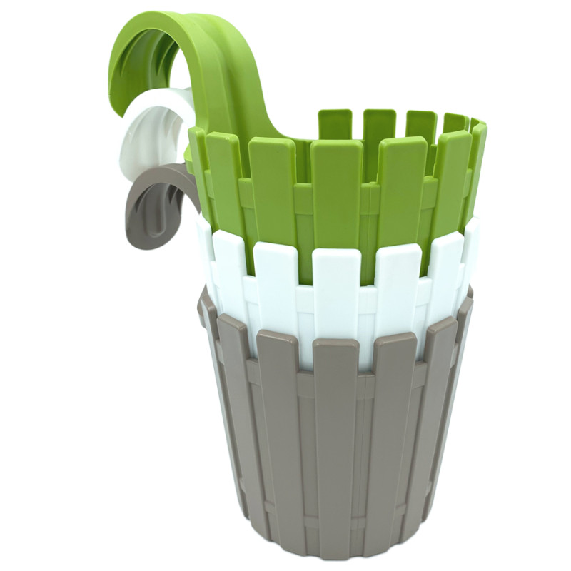 Горщик для квітів балконний Akasya, виконаний у вигляді паркана, що додає йому заміський колорит. Кольорова палітра горщиків, вигідно підкреслить ваші рослини і освіжить створений інтер'єр. Має кріплення, яке дозволяє легко підвісити горщик на перила, поручні або огорожі. Є дренажна вставка, яка відводить зайву воду і сприяє аерації коренів. Коріння рослини не застоюються в воді і забезпечені циркуляцією повітря. Горщик виготовлений з поліпропілену - найбільш безпечний з усіх видів пластику, матеріал гнучкий, не має запаху, стійкий до вигорання кольору під впливом сонця. Підвіс на перила діаметром до 6 см. У комплекті один регульований центруючий штифт.