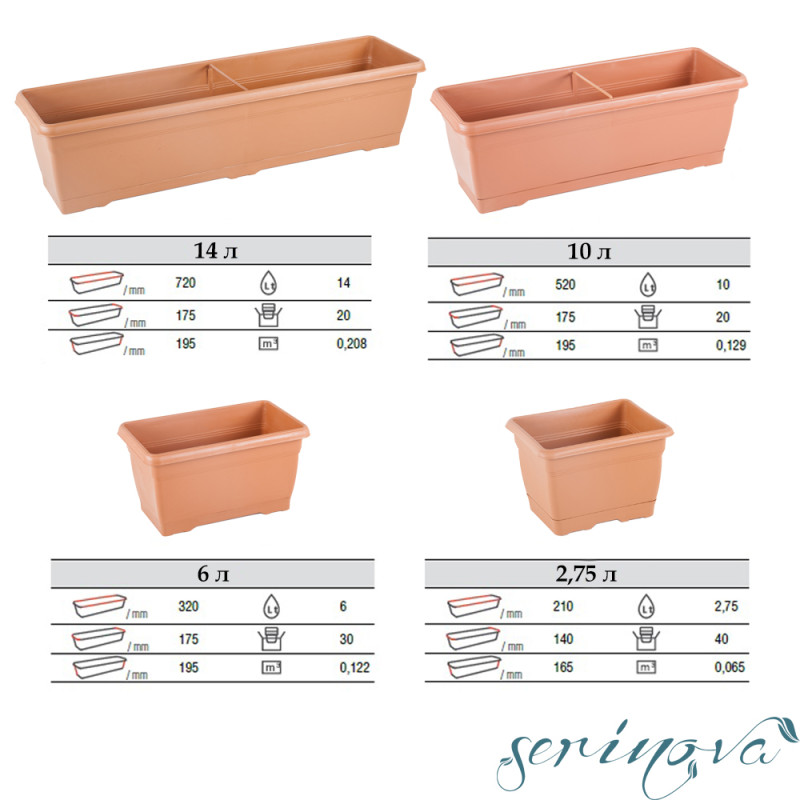 У приміщенні або на відкритому повітрі, горщик для квітів балконний Villa, вигідно підкреслить красу ваших рослин і додасть в інтер'єр свіжості. Горщик з матовою поверхнею і приглушеною палітрою кольорів підійде до сучасного стилю інтер'єру. До горщика з дренажними отворами, щільно прилягає підставка на засувках, для надлишків води і відведення зайвої вологи, коріння рослини не застоюється у воді і забезпечене оптимальною циркуляцією повітря. Квітковий горщик виготовлений з поліпропілену - найбільш безпечний з усіх видів пластику, матеріал гнучкий, не має запаху, стійкий до УФ-випромінювання, вигоряння кольору під впливом сонця. Може використовуватися всередині приміщення і на вулиці. Нехай ваш балкон стане місцем заспокоєння і споглядання квіткової краси.