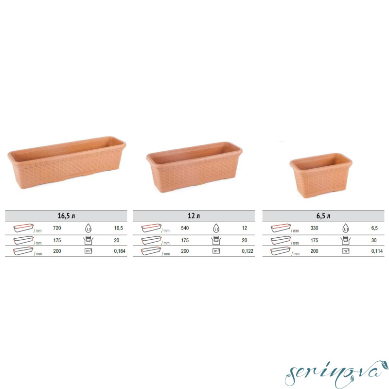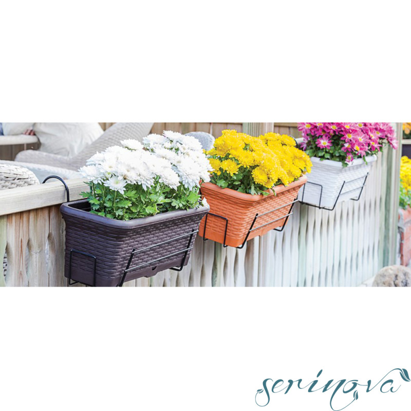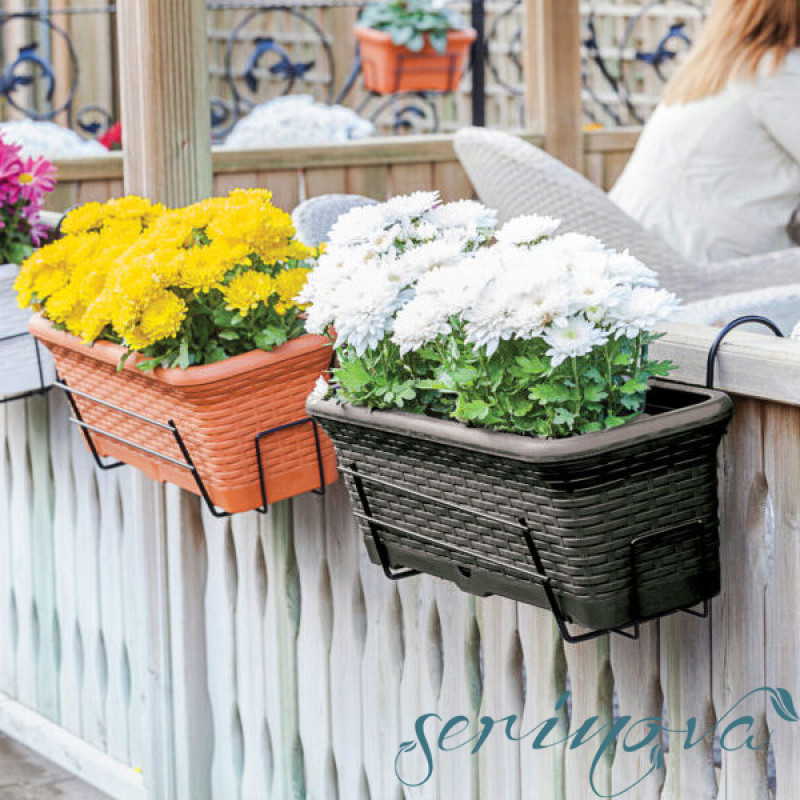 Опис і застосуванняБалконний горщик для квітів Wire, з цікавою плетеною текстурою під ротанг, підійде для оформлення присадибної території вашого будинку, дачі або кафе. Горщик з дренажними отворами для аерації кореневої системи і відведення зайвої вологи. До горщика щільно приєднується піддон. Матеріал виробу поліпропілен - найбільш безпечний з усіх видів пластику, не має запаху, стійкий до УФ-випромінювання, вигоряння кольору під впливом сонця. Може використовуватися всередині приміщення і на вулиці. Для підвісу балконних горщиків Wire, необхідно два металевих кріплення (арт.11327).