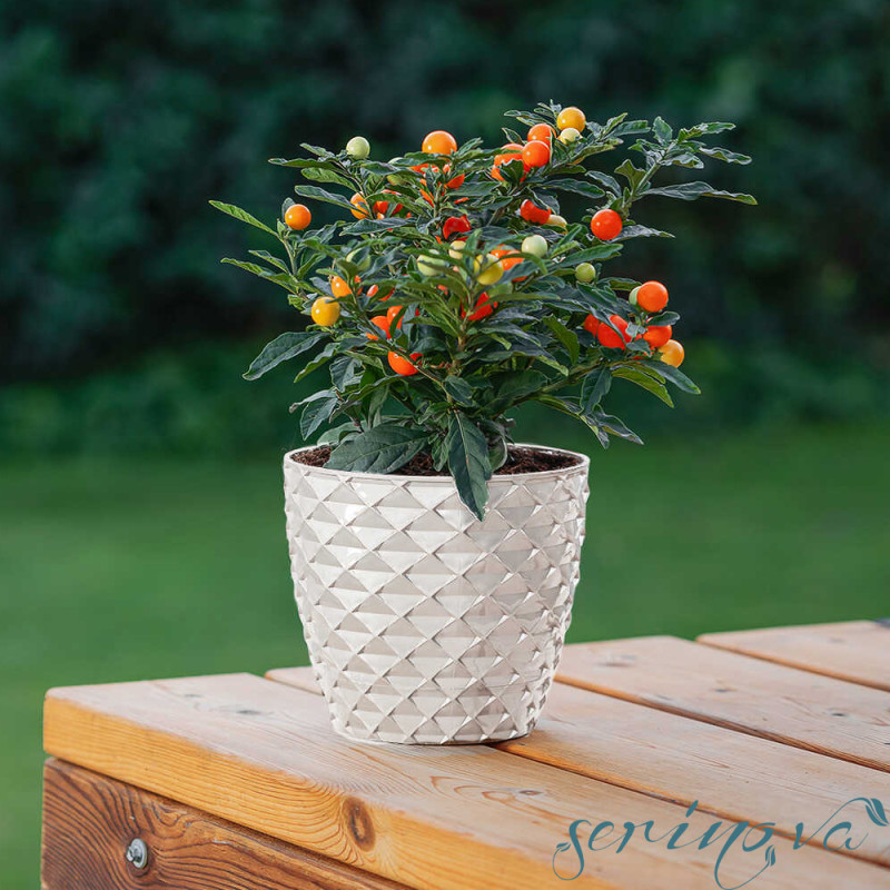 Горщик для квітів Kapadokya, має цікаву рельєфну фактуру. Пастельні кольори і яскравий глянець горщиків, гармонійно поєднуються між собою в одній композиції, прекрасно доповнюючи дитячу кімнату або спальню. До горщика з дренажними отворами, щільно прилягає підставка на засувках, для надлишків води і відведення зайвої вологи, коріння рослини не застоюється у воді і забезпечене оптимальною циркуляцією повітря. Виготовлений з поліпропілену - найбільш безпечний з усіх видів пластику, матеріал гнучкий, не має запаху, стійкий до УФ-випромінювання, вигоряння кольору під впливом сонця. Може використовуватися всередині приміщення і на вулиці.