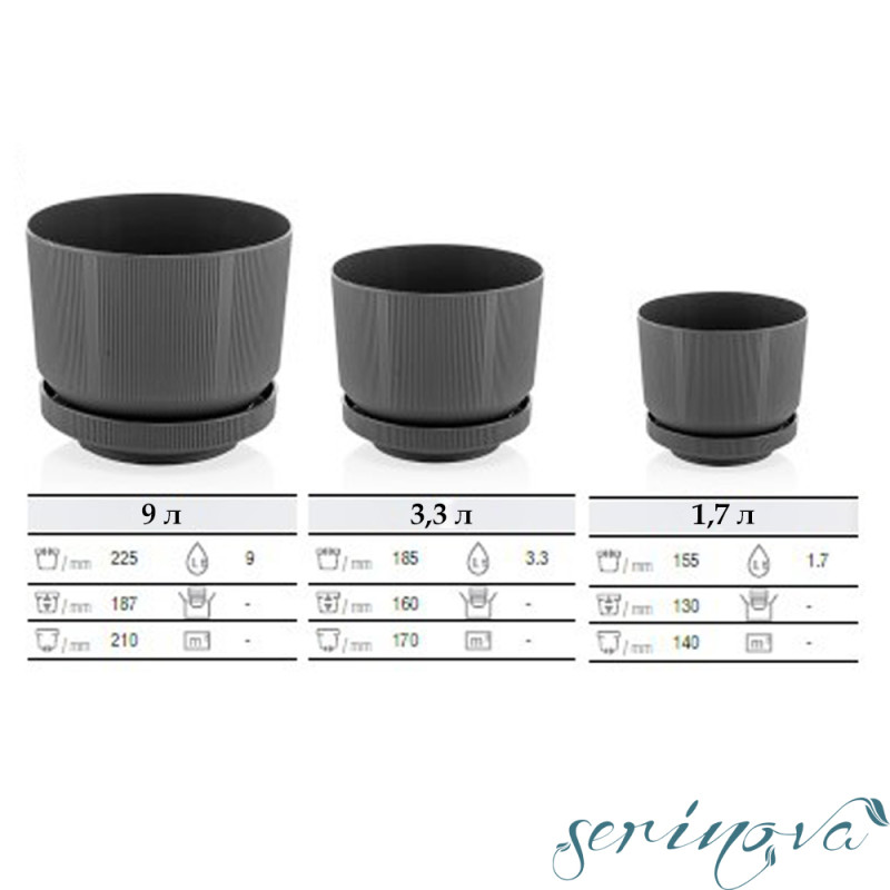 Горщик представлений в декількох об'ємах: 1,7 л; 3,3 л; 6 л; 9 л.