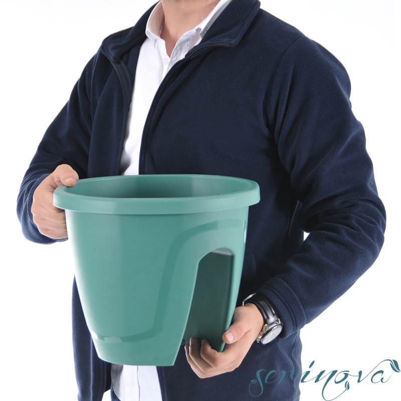 Опис і застосуванняГорщик для квітів Emerald, легко кріпиться на перила і поручні, завдяки конструкції горщика з прорізом. За допомогою горщиків Emerald, можна створити балюстраду з живих квітів стикуючи один з одним, прикрашаючи поручні відкритого балкона або тераси. Є дренажна вставка, яка відводить зайву воду і сприяє аерації коренів. Коріння рослини не застоюється у воді і забезпечене оптимальною циркуляцією повітря. Горщик матовий з глянсовою вставкою, виготовлений з поліпропілену - найбільш безпечний з усіх видів пластику, матеріал гнучкий, не має запаху, стійкий до УФ-випромінювання, вигоряння кольору під впливом сонця. Може використовуватися всередині приміщення і на вулиці. Підходить на перила діаметром до 6 см. У комплекті два регульованих центруючих штифта. Поглиблення в горщику - 16 см, ширина - 6 см.