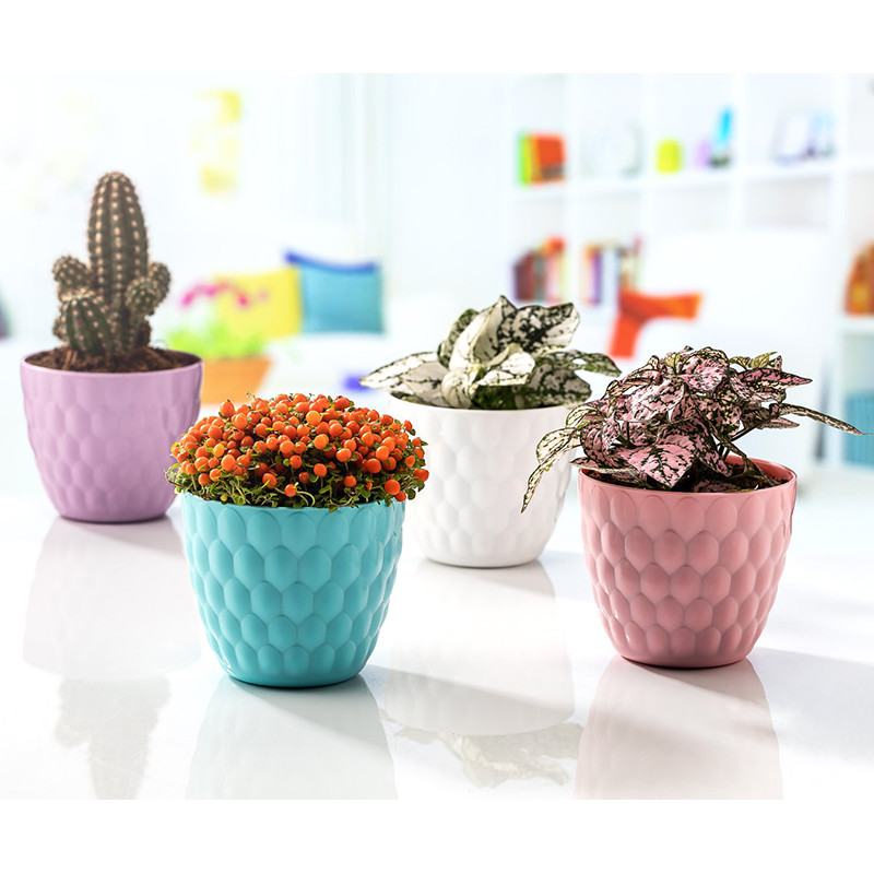 Горщик для квітів PINECON, має цікаву рельєфну фактуру. Пастельні кольори і яскравий глянець горщиків, гармонійно поєднуються між собою в одній композиції, прекрасно доповнюючи дитячу кімнату або спальню. До горщика з дренажними отворами, щільно прилягає підставка на засувках, що дозволяє лишкам води стікати, завдяки чому коріння рослин не псується. Виготовлений з поліпропілену, найбільш безпечний з усіх видів пластику - матеріал гнучкий, не має запаху, стійкий до вигорання кольору під впливом сонця.