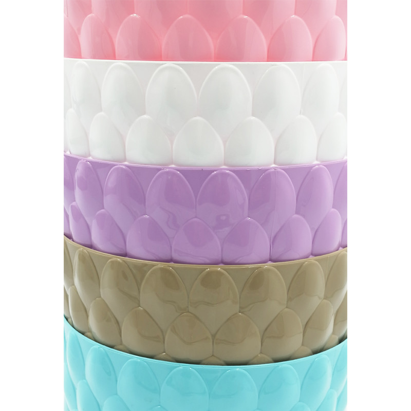 Горщик для квітів PINECON, має цікаву рельєфну фактуру. Пастельні кольори і яскравий глянець горщиків, гармонійно поєднуються між собою в одній композиції, прекрасно доповнюючи дитячу кімнату або спальню. До горщика з дренажними отворами, щільно прилягає підставка на засувках, що дозволяє лишкам води стікати, завдяки чому коріння рослин не псується. Виготовлений з поліпропілену, найбільш безпечний з усіх видів пластику - матеріал гнучкий, не має запаху, стійкий до вигорання кольору під впливом сонця.