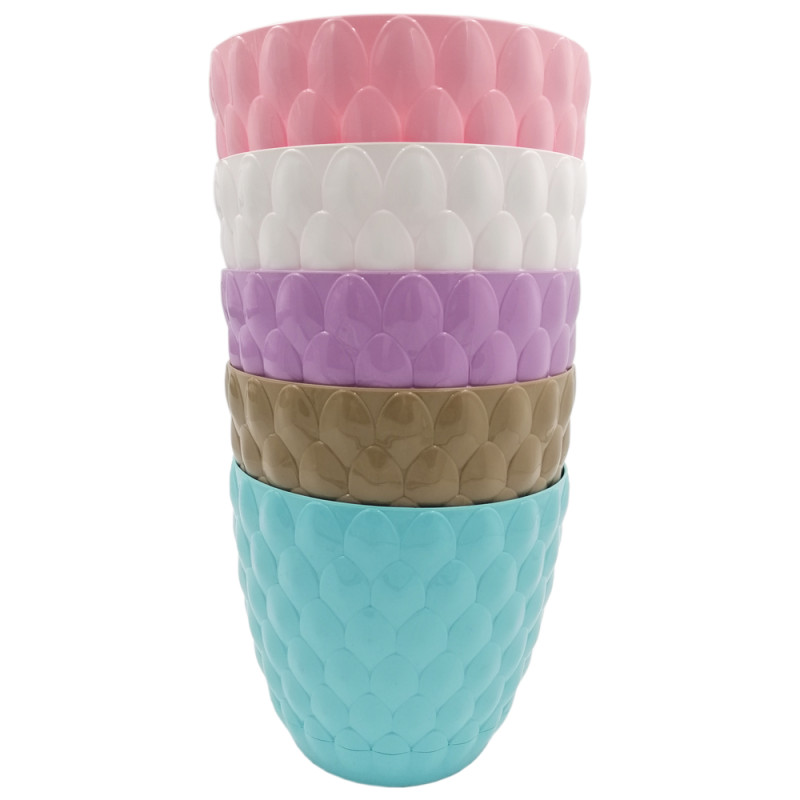 Горщик для квітів PINECON, має цікаву рельєфну фактуру. Пастельні кольори і яскравий глянець горщиків, гармонійно поєднуються між собою в одній композиції, прекрасно доповнюючи дитячу кімнату або спальню. До горщика з дренажними отворами, щільно прилягає підставка на засувках, що дозволяє лишкам води стікати, завдяки чому коріння рослин не псується. Виготовлений з поліпропілену, найбільш безпечний з усіх видів пластику - матеріал гнучкий, не має запаху, стійкий до вигорання кольору під впливом сонця.