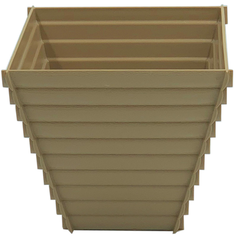 Квітковий горщик фактурою поверхні і дизайном емітує натуральне дерево, він підкреслить природний характер навколишнього середовища і індивідуальність рослини. Є дренажна вставка, яка відводить зайву воду і сприяє аерації коренів. Коріння рослини не застоюються в воді і забезпечені циркуляцією повітря. Вода не протікає при поливі, немає наскрізних отворів, забезпечуючи чистоту і зручність в експлуатації. Виготовлений з поліпропілену - найбільш безпечний з усіх видів пластику, матеріал гнучкий, не має запаху, стійкий до вигорання кольору під впливом сонця.