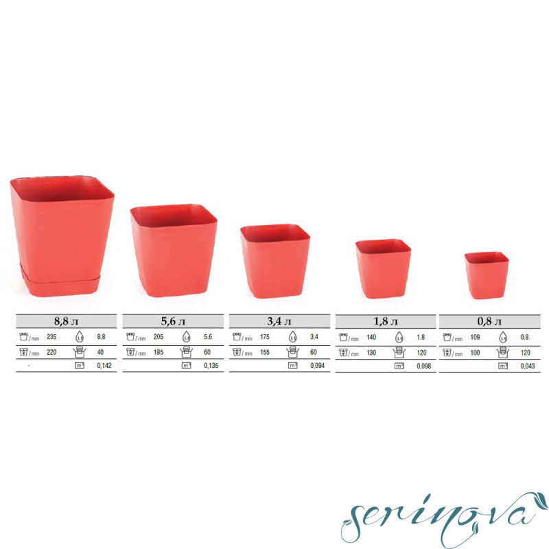 Горщик представлений в декількох об'ємах: 0,8 л; 1,8 л; 3,4 л; 5,6 л; 8,8 л.