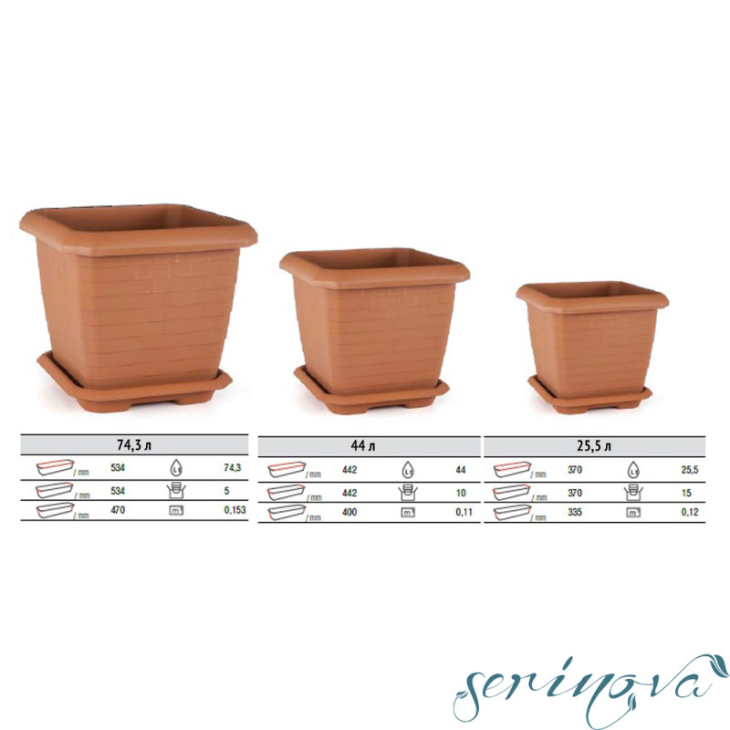 Горщик представлений в декількох об'ємах: 25,5 л; 44 л; 74,3 л.