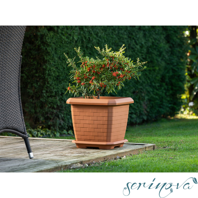 Опис і застосуванняГорщик для квітів з піддоном Hisar, підходящий варіант для озеленення кафе, ресторанів, офісів або дачі. Горщик з посиленими стінками для великих рослин. Для зручності переміщення в піддоні є отвори для коліщаток (до комплекту не входять). Горщик без дренажних отворів, для видалення надлишків вологи можна використовувати керамзит. Горщик виготовлений з поліпропілену - найбільш безпечний з усіх видів пластику, матеріал не має запаху, стійкий до УФ-випромінювання, вигоряння кольору під впливом сонця. Може використовуватися всередині приміщення і на вулиці.