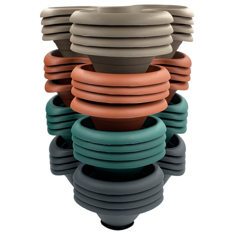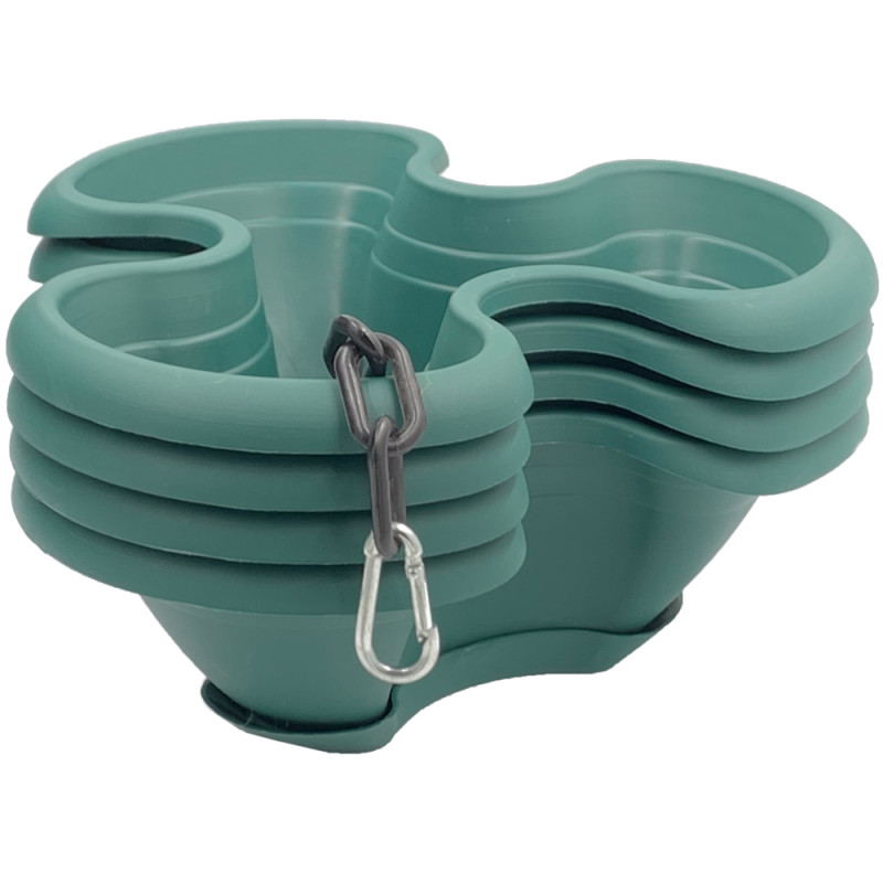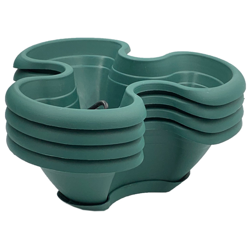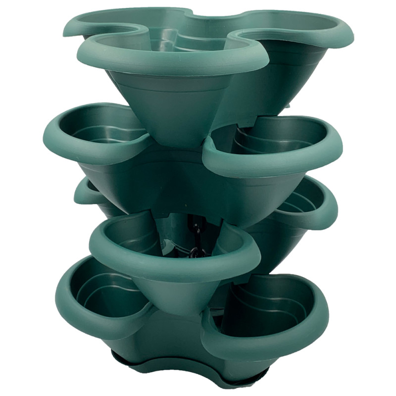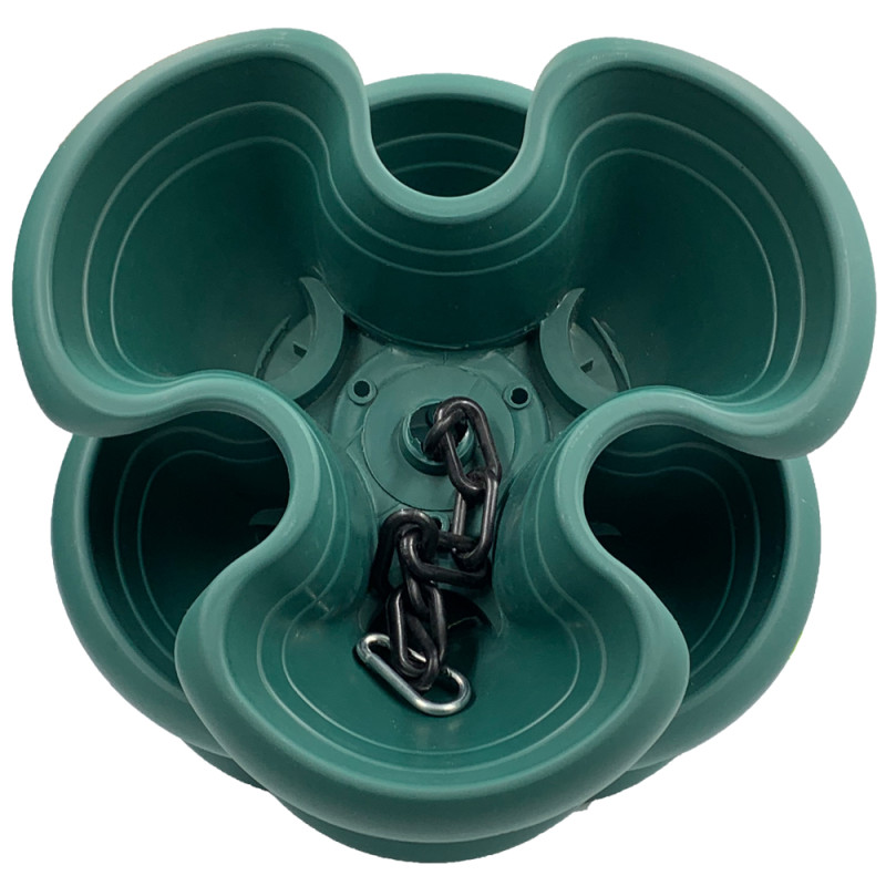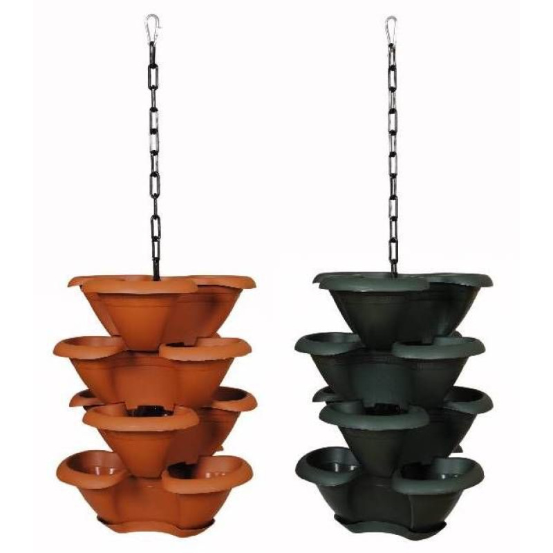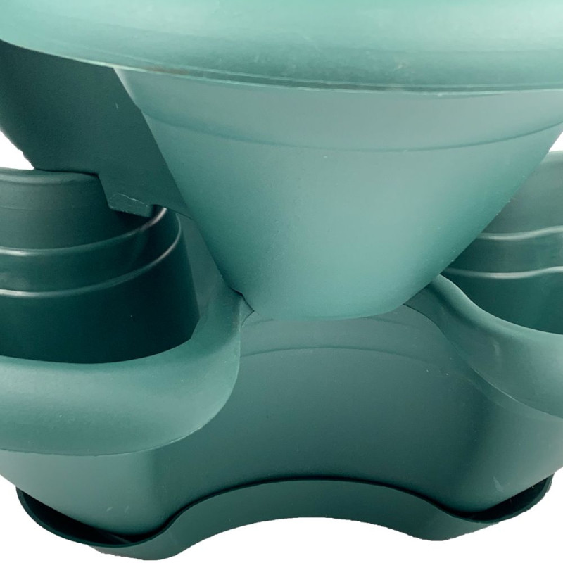 Квітковий горщик складається з чотирьох ярусів. Всі яруси з'єднуються між собою виступами на дні. Крізь яруси проходить пластиковий ланцюжок з металевим карабіном для підвішування горщика. У кожному ярусі є дренажні отвори, які знаходяться біля основи ближче до центру, що забезпечує чистоту квітів при поливі. До нижнього ярусу щільно фіксується піддон для надлишків води. Горщик може бути поставлений на поверхню або підвішений на ланцюжку.