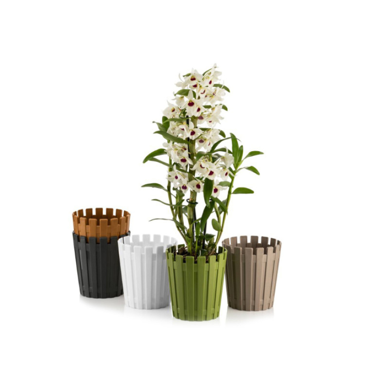 Горщик для орхідеї Akasya, виконаний у вигляді заборчика, що додає йому заміський колорит. Кольорова палітра горщиків, вигідно підкреслить ваші рослини і освіжить створений інтер'єр. У квіткових горщиках Akasya, вода не протікає на підвіконня при поливі, забезпечуючи чистоту і зручність в експлуатації. Горщик матовий, виготовлений з поліпропілену - найбільш безпечний з усіх видів пластику, матеріал гнучкий, не має запаху, стійкий до впливу УФ - випромінювання. Без дренажного отвору.