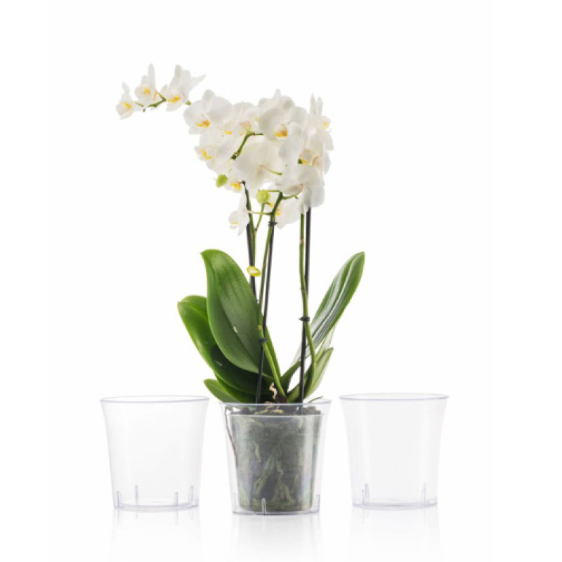 Коріння орхідеї бере участь в процесі фотосинтезу, отримуючи з світла і повітря необхідні для розвитку поживні речовини. Прозорий горщик Salep забезпечує комфорт для Вашої орхідеї. У квіткових горщиках Salep, вода не протікає на підвіконня при поливі, забезпечуючи чистоту і зручність в експлуатації. Висота горщика дорівнює його діаметру, що виключає перекидання квітки. Горщик виготовлений із пластику, не має запаху. Без дренажного отвору.