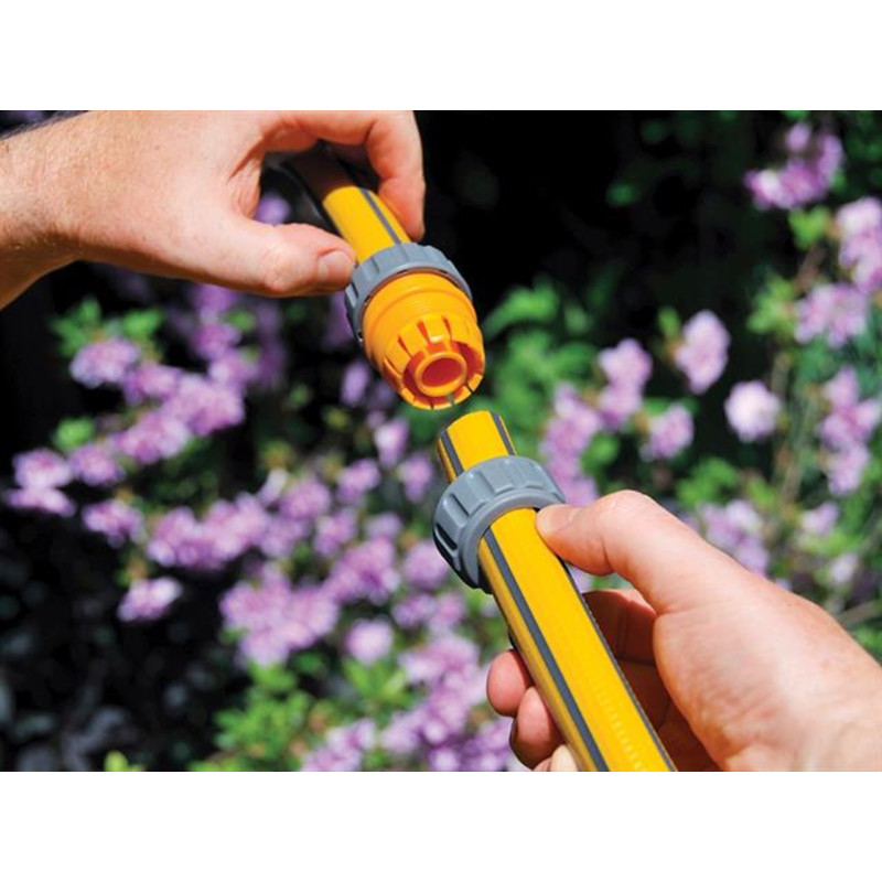 Замість того, щоб викидати зіпсований шланг, можна вирізати пошкоджену частину шланга і з'єднати два отриманих відрізка Конектором для ремонту шлангів.