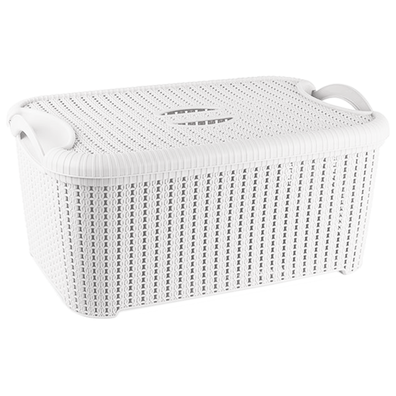 З кошиком Flexi, організувати порядок в зберіганні речей, легко і зручно. Ця модель з імітацією плетіння, стане доповнюючим елементом будь-якого інтер'єру. Форма кошика дозволить зберігати і використовувати його під підвісною тумбою умивальника у ванній кімнаті. Кошик укомплектований кришкою, яка перешкоджає попаданню всередину бризок і пилу. Виріб оснащений зручними ручками для перенесення. Виготовлений з поліпропілену - найбільш безпечний з усіх видів пластику, матеріал гнучкий, вологостійкий, не має запаху.