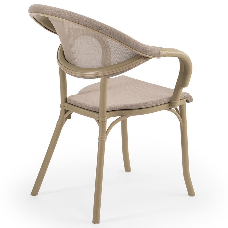 Крісло Flash-N зі спинкою і сидінням, покритими міцною тканинною оббивкою від Plastitex, що робить більш елегантним і привабливим. Крісло Flash-N легке і практичне, призначене для використання на відкритому повітрі. Крісло Flash-N є ідеальним рішенням для меблювання будь-яких приміщень, кафе і ресторанів, пропонуючи повну свободу композицій і колірних комбінацій.