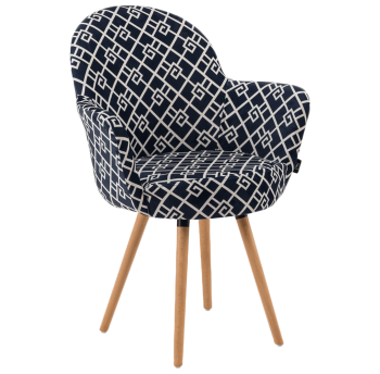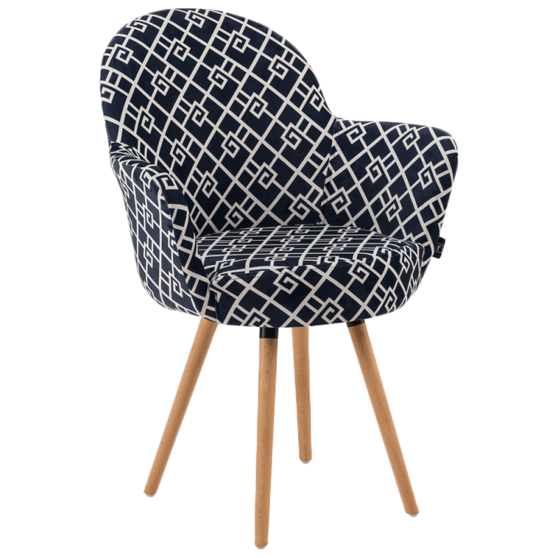 Крісло Tilia Gora-N комфортне з плавними, м'якими лініями. Здатне прикрасити будь-який інтер'єр і зробити його більш привабливим. Крісло досить просторе, має зручну спинку і підлокітники, така конструкція дозволяє максимально розслаблено розташуватися, не навантажуючи спину і шию. Практична тканинна оббивка з різноманітним забарвленням, доповнюється візерунковими принтами. Конусні ніжки міцні, виготовлені з масиву натурального дерева бук, покриті лаком. Крісло чудово підходить для використання не тільки в вітальні, а і в обідній зоні, на кухні або в спальні. Дуже добре поєднується з круглими столами Lamax і Lamax-T.