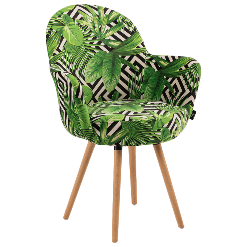 Крісло Tilia Gora-N комфортне з плавними, м'якими лініями. Здатне прикрасити будь-який інтер'єр і зробити його більш привабливим. Крісло досить просторе, має зручну спинку і підлокітники, така конструкція дозволяє максимально розслаблено розташуватися, не навантажуючи спину і шию. Практична тканинна оббивка з різноманітним забарвленням, доповнюється візерунковими принтами. Конусні ніжки міцні, виготовлені з масиву натурального дерева бук, покриті лаком. Крісло чудово підходить для використання не тільки в вітальні, а і в обідній зоні, на кухні або в спальні. Дуже добре поєднується з круглими столами Lamax і Lamax-T.