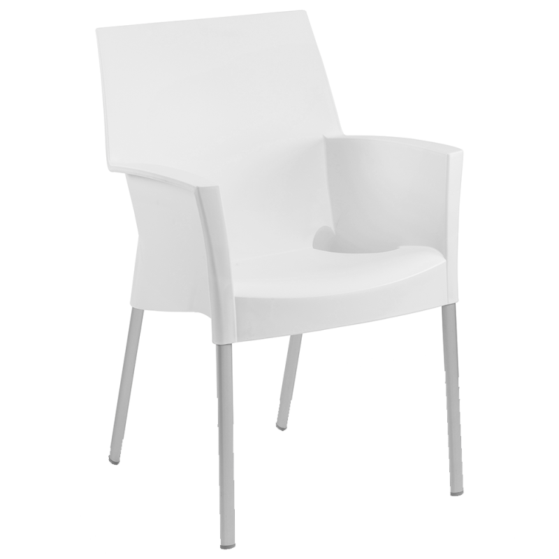 Зручне і ергономічне крісло Sole. Матеріал вироби поліпропілен посилений скловолокном, завдяки чому виріб стійкий до низьких і високих температур, вологості, а також забезпечує високу міцність і довгий термін експлуатації. Ніжки з алюмінію діаметром 20 мм оснащені заглушками проти ковзання по підлозі. Підходить для використання як всередині так і зовні приміщення.