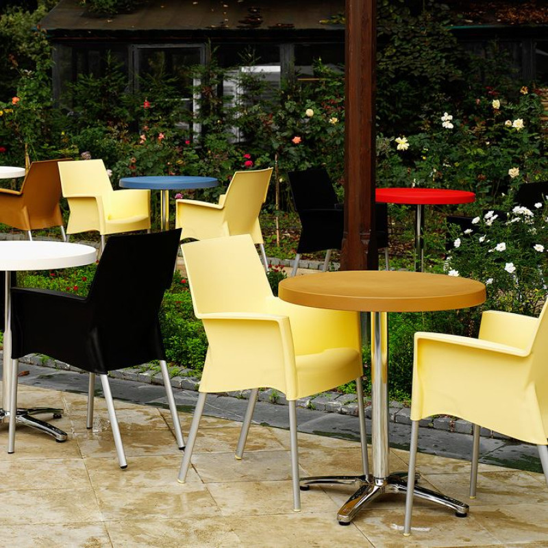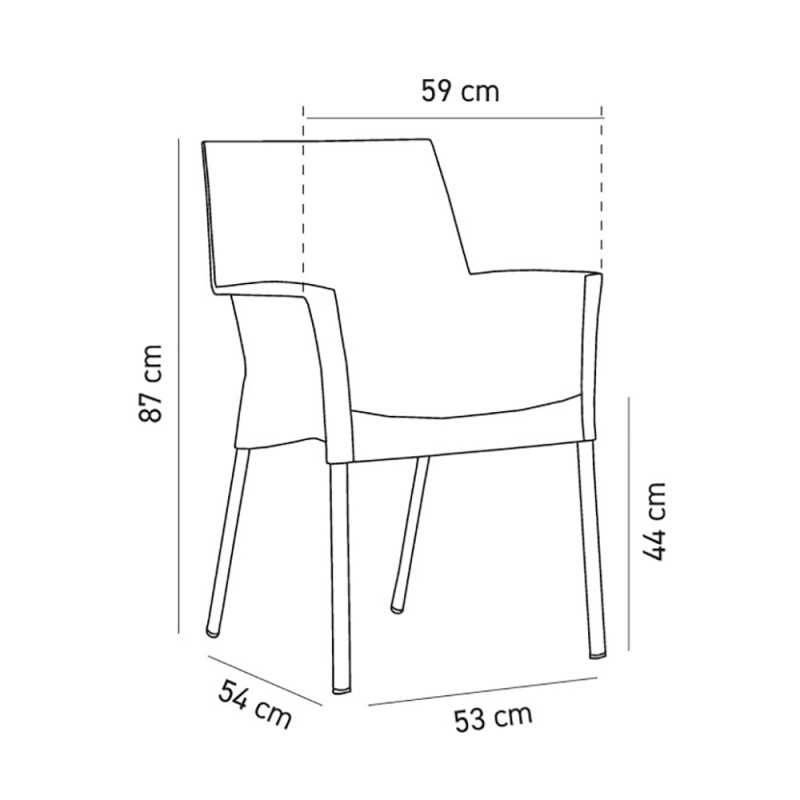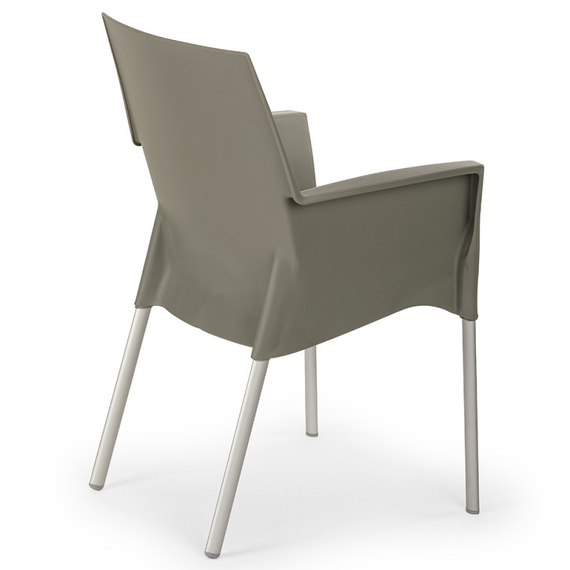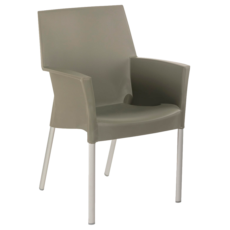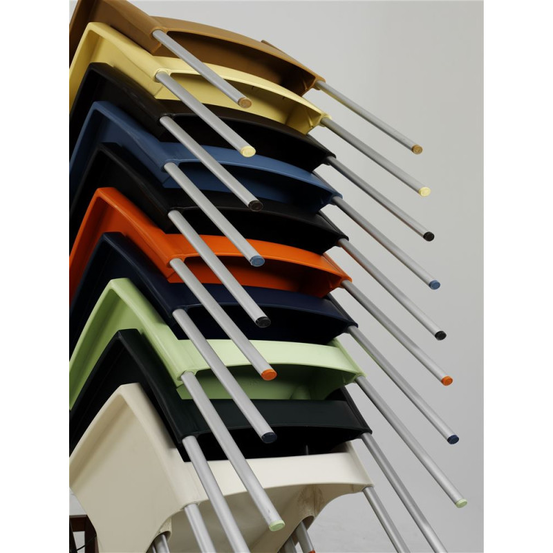 Зручне і ергономічне крісло Sole. Матеріал вироби поліпропілен посилений скловолокном, завдяки чому виріб стійкий до низьких і високих температур, вологості, а також забезпечує високу міцність і довгий термін експлуатації. Ніжки з алюмінію діаметром 20 мм оснащені заглушками проти ковзання по підлозі. Підходить для використання як всередині так і зовні приміщення.