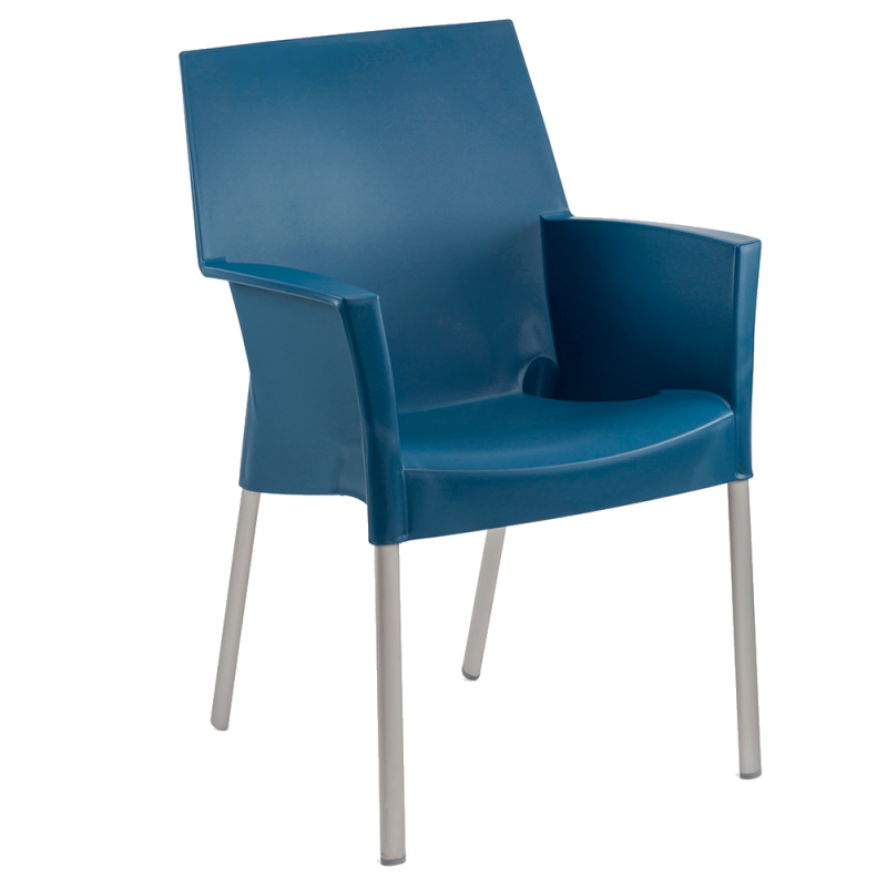 Зручне і ергономічне крісло Sole. Матеріал вироби поліпропілен посилений скловолокном, завдяки чому виріб стійкий до низьких і високих температур, вологості, а також забезпечує високу міцність і довгий термін експлуатації. Ніжки з алюмінію діаметром 20 мм оснащені заглушками проти ковзання по підлозі. Підходить для використання як всередині так і зовні приміщення.
