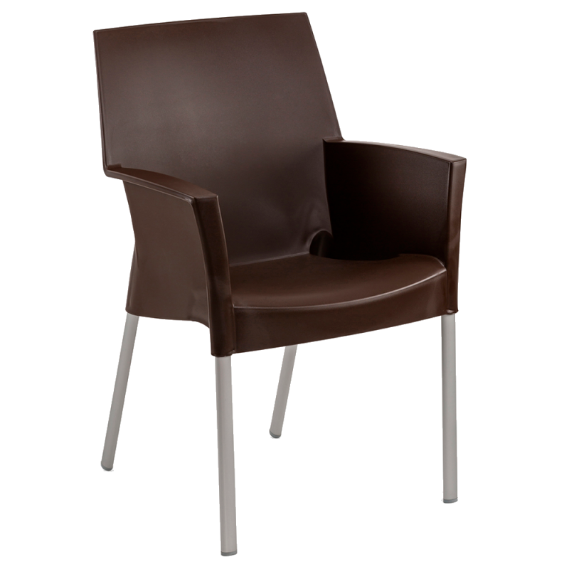 Зручне і ергономічне крісло Sole. Матеріал вироби поліпропілен посилений скловолокном, завдяки чому виріб стійкий до низьких і високих температур, вологості, а також забезпечує високу міцність і довгий термін експлуатації. Ніжки з алюмінію діаметром 20 мм оснащені заглушками проти ковзання по підлозі. Підходить для використання як всередині так і зовні приміщення.