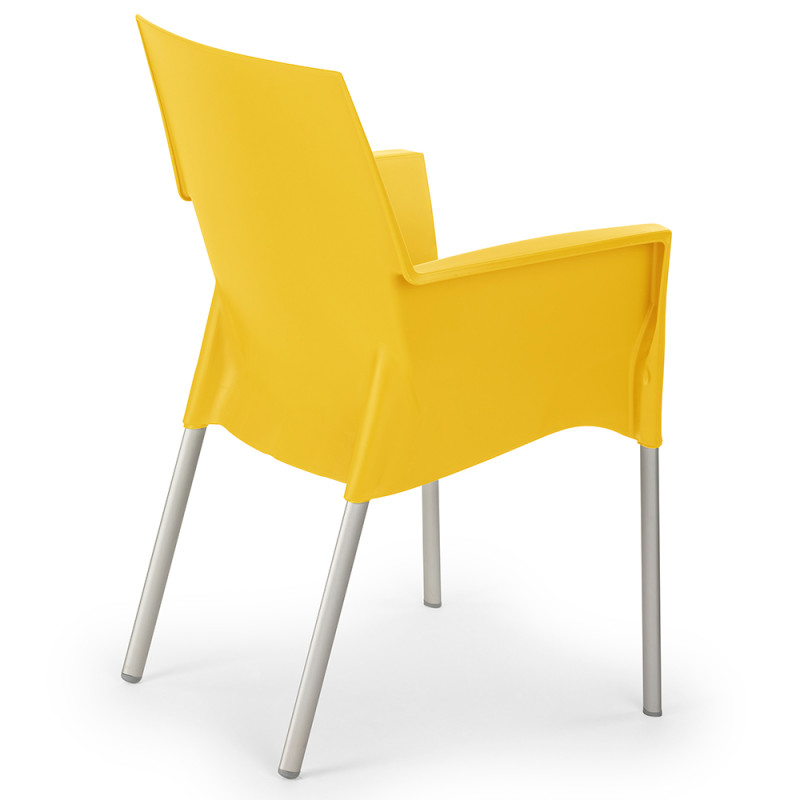 Зручне і ергономічне крісло Sole. Матеріал вироби поліпропілен посилений скловолокном, завдяки чому виріб стійкий до низьких і високих температур, вологості, а також забезпечує високу міцність і довгий термін експлуатації. Ніжки з алюмінію діаметром 20 мм оснащені заглушками проти ковзання по підлозі. Підходить для використання як всередині так і зовні приміщення.