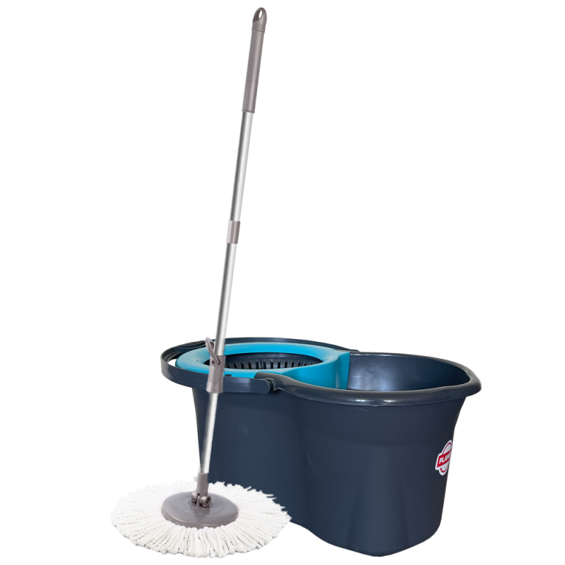Набір для прибирання зручний в експлуатації і невимогливий у догляді. Складається з відра об'ємом 14 л, металевої рукоятки і насадки з 100% мікрофібри. Перевагою набору, є автоматична система віджиму. Відро оснащено центрифугою, регулювати ступінь вологості мікрофібри ви можете числом натискань рукоятки. Насадка обертається на 360 градусів, що сприяє більшій ефективності прибирання. Висота швабри регулюється, досить натиснути на рукоятку з відкритим фіксатором. Підходити для всіх видів підлог.