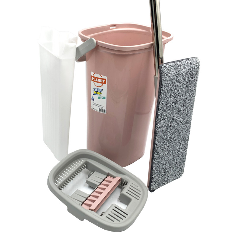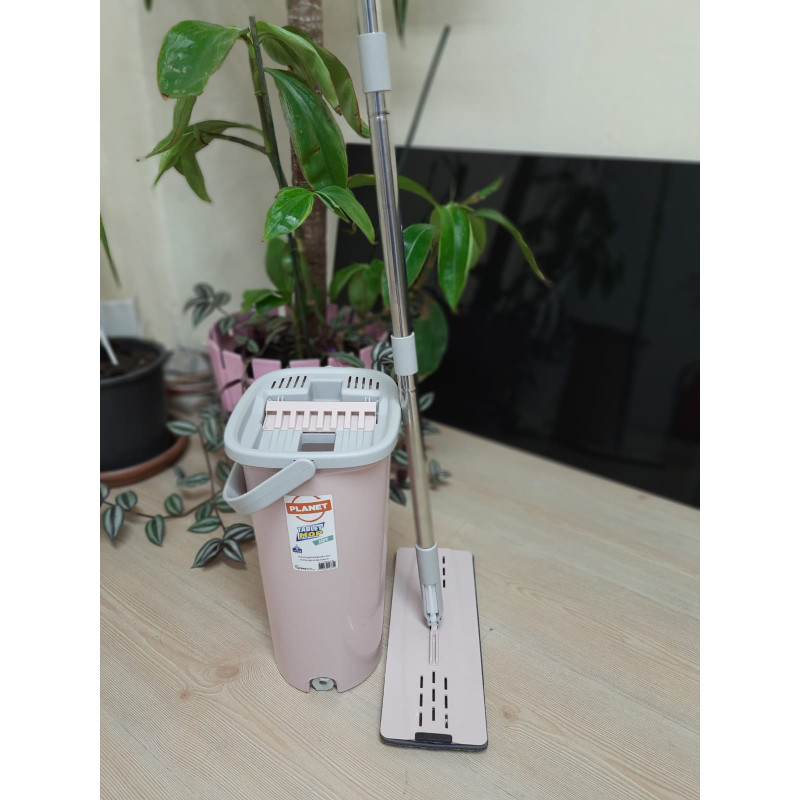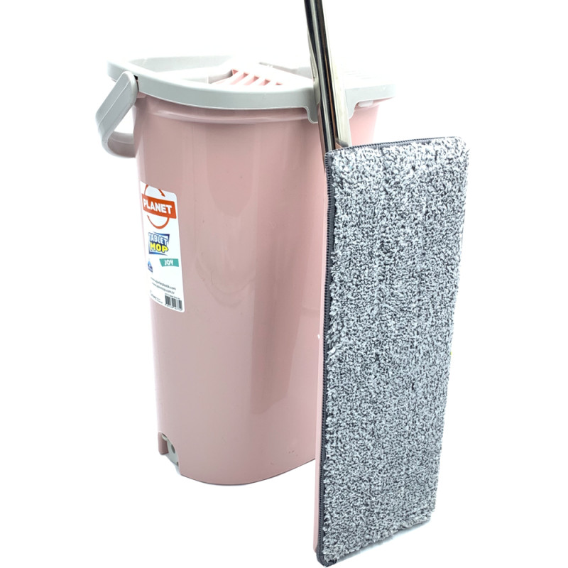 Набір для прибирання TABLET MOP JOY 6,5 л від компанії «Planet» є одним з найбільш бажаних продуктів завдяки легкому і простому використанню. Завдяки камері з віджимом, що знаходиться в відрі, виходить чисте і гігієнічне прибирання. Відро складається з відра і знімного картриджа для віджиму. За допомогою відра зі спеціальною кришкою, ви з легкістю вимиєте ганчірку, не торкаючись до неї руками і не знімаючи з швабри. Конструкція кришки має зубчасту стінку, за допомогою якої видаляються налиплі на насадку волосся і інше дрібне сміття. Універсальна насадка з мікрофібри дуже зносостійка, добре вбирає вологу, не залишає розводів. Прати насадку можна, так часто, наскільки в цьому є необхідність. Ручка швабри з регульованою довжиною, складається з декількох частин, які легко зібрати і розібрати. Для зручності зливу води з відра, рекомендується зняти кришку і внутрішній картридж, акуратно піднімаючи бічні засувки. Дуже добре підходить для паркету, ламінату, лінолеуму, плитки, скла та інших поверхонь. Насадки з мікрофібри можна прати в пральній машині при температурі до 50 градусів.